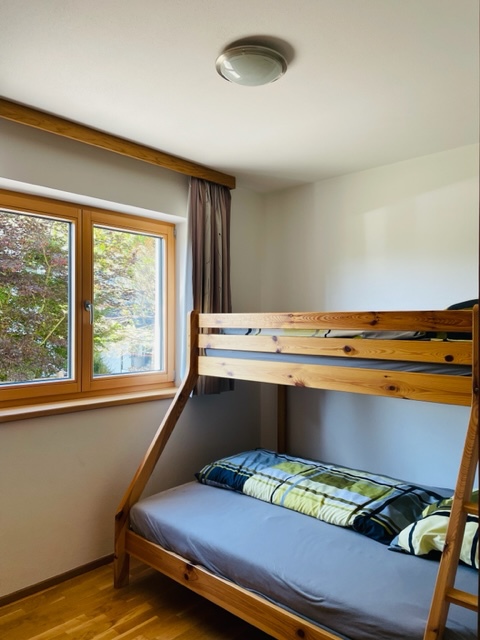 - Schlafzimmer 2 mit einem Etagenbett (Doppelbett 140 cm unten, Einzelbett oben).